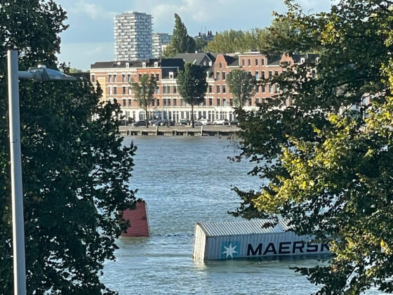 Ship sheds containers after striking Willemsbrug in Rotterdam