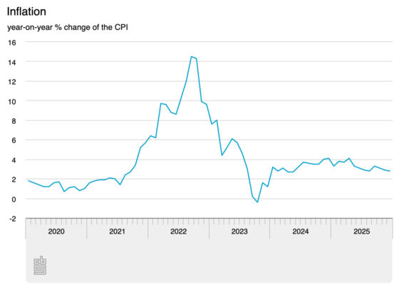 Inflation falls slightly to 2.8%, still above eurozone average